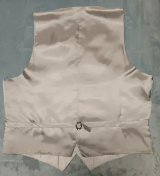 Elegante chaleco de ceremonia con un diseño texturizado. - Cierre de botones. - Dos bolsillos frontales. - Forro interior satinado. Se ha utilizado una sola vez por ser padrino de una boda. Haría falta limpiarlo en la tintorería. Costó 149 €. No admito ofertas