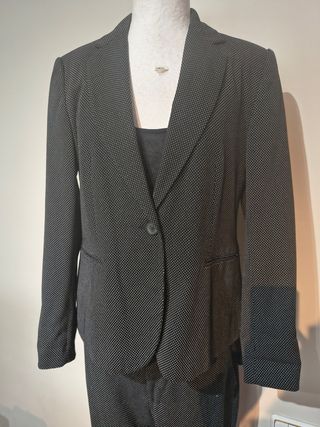 Traje de Zara 2 piezas, blazer y pantalón t-40. Color negro con micro puntos blancos. Súper bonito y favorecedor. ❤️