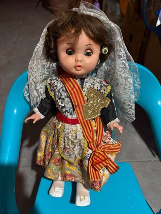 Preciosa muñeca vestida con un traje regional fallero. Ideal para coleccionistas o amantes de las tradiciones valencianas. - Muñeca con detalles cuidados. - Traje típico valenciano. - Incluye velo.