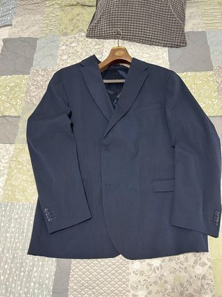 Conjunto americana y pantalón en azul oscuro. Modelo slim fit. Medidas: Largo manga 64 cm Ancho hombros 45 cm Largo Pierna 94 cm Ancho cintura 40 cm