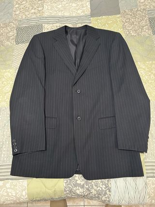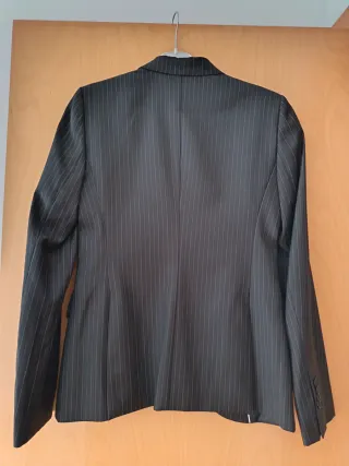 Elegante traje de raya diplomática. - Diseño clásico con un botón. - Bolsillos frontales. - Detalle de botones en los puños. Muy elegante Con etiquetas sin estrenar. Pongo este precio porque la manga del traje tiene un detalle insignificante que apenas se aprecia, ver en fotos. Precio real del traje en la etiquetas es de 195€. Lo vendo por 110€.