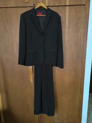 Elegante traje de dos piezas de Anna Mora. Talla 52 - Chaqueta con solapas y cierre de dos botones. - Pantalón recto con detalle en la cintura.