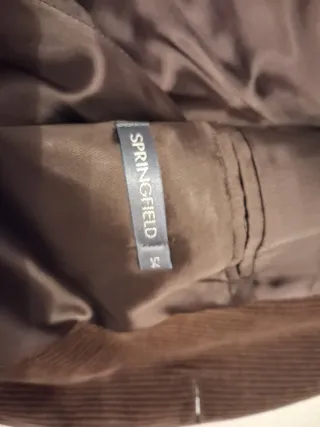 Americana de pana en color marrón. T.54 - Cierre de dos botones. - Dos bolsillos frontales con solapa. - Cuello de solapa clásico.