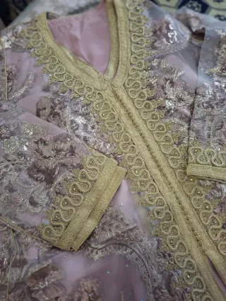 Elegante tekchita de inspiración marroquí, perfecta para ocasiones especiales. Su diseño presenta intrincados bordados que añaden un toque de distinción. - Diseño con bordados detallados.