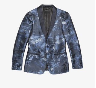 Americana de la marca Antony Morato, modelo Roxanne. - Diseño con estampado abstracto en tonos azules. - Cuello tipo chal. - Cierre de un botón. - Bolsillos frontales con solapa.