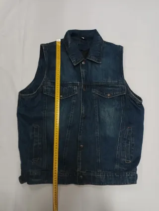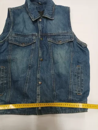 Chaleco vaquero de color azul en talla L. - Diseño clásico. - Dos bolsillos en el pecho. - Cierre de botones.