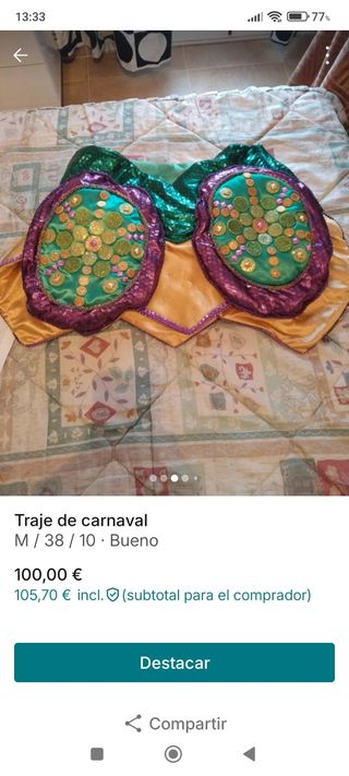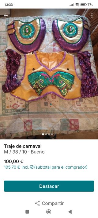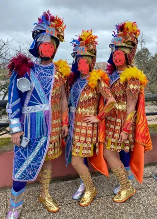 Trajes utilizados en el desfile de carnaval de Badajoz. Son 3 trajes (80€ cada uno). Corresponden a las siguientes tallas: 1 traje talla 38 1 traje talla 42/44 1 traje talla 46 Hechos a mano. No incluyen zapatillas pero sí el forro que llevan.