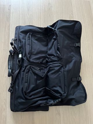 Funda para guardar y transportar trajes o vestidos. - Compartimentos exteriores con cremallera. - Asas de mano y correa para hombro. - Cierre con hebillas. - Bolsillos Grandes