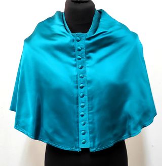 Muceta de traje académico en un vibrante color verde esmeralda. Ideal para ceremonias y eventos académicos. - Tejido satinado brillante. - Cierre frontal con botones. - Diseño tipo capa.