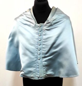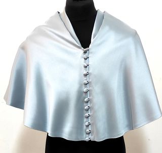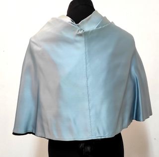 Muceta de traje académico en color azul, utilizada en la Facultad de Letras. - Cierre frontal con botones. - Diseño tipo capa con cuello. - Tejido satinado.