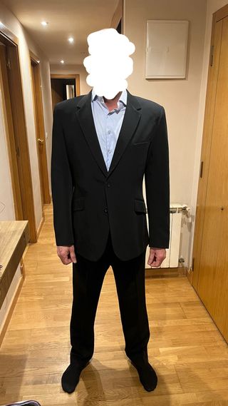 Traje estrecho Zara talla chaqueta 46 y pantalón 36/38 el pantalón da para talla 38 porque se le sacó un poco la cintura para quedar los bolsos más holgados. Se puso una vez un chico para una graduación