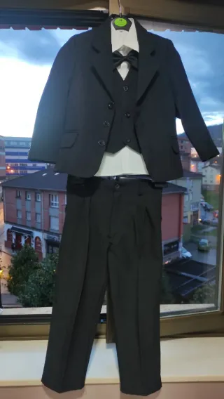 Se vende traje para niño de 4 años de pantalón, chaqueta, chaleco, pajarita y camiseta. La marca que pone no es esa es LES VOILERS