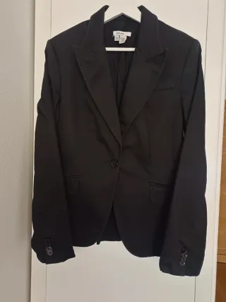 Elegante blazer de corte clásico. De Zara pero sin etiquetas de composición ni de talla. -Elástica. - Cierre de dos botones. - Dos bolsillos frontales. - Cuello solapa. -Impecable.