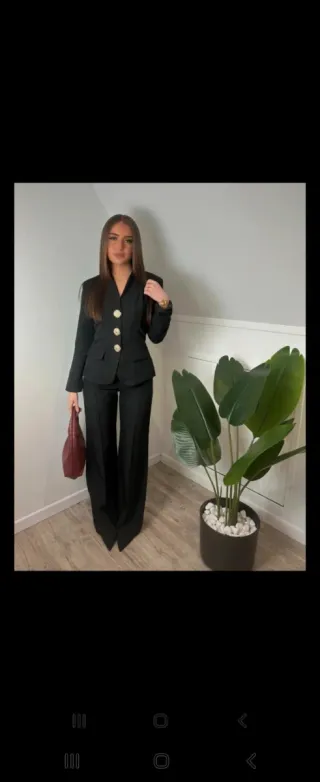 Conjunto de blazer y pantalón. - Blazer de corte clásico. - Pantalón a juego. ES NEGRO Traje chica curvi Talla 1 XL Cómodo, sin uso Bolsillos de la blazer falsos El pantalón sí tiene bolsillos