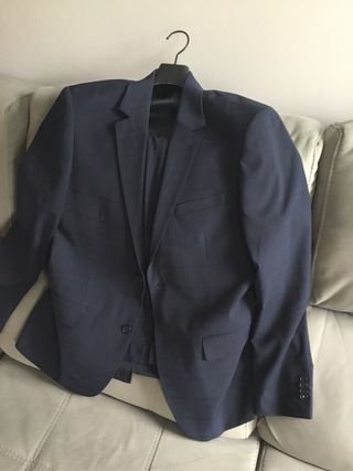 Elegantes trajes de Zara Man en color gris. Perfecto para ocasiones formales o eventos especiales. - Diseño moderno con solapa contrastada. - Cierre de dos botones. - Bolsillos frontales con detalle. - Forro interior azul. Cada traje 50€ pero precio si te llevas el lote. También precio por separado pantalón y chaqueta