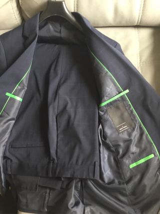 Traje de chaqueta y pantalón de corte slimfit, de Cortefiel sastrería. En muy buen estado. Pantalón talla 42, con el bajo cogido (mide 73,5 cm del tiro al bajo). Americana talla 48. - Chaqueta de dos botones. - Bolsillos frontales. - Puño con botones. - Hago envíos.