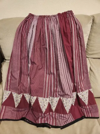 Falda traje de casera hecho a mano. Eskuz egindako baserritar gona. Más información en nuestro Instagram: @myjantziak Incluye falda, delantal y pañuelo. Largura de la falda 88cm Goma en la cintura.