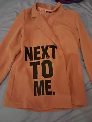 Americana rosa con un diseño llamativo de letras negras. - Diseño de letras NEXT TO ME. - Cierre cruzado con botón. - Cuello solapa.