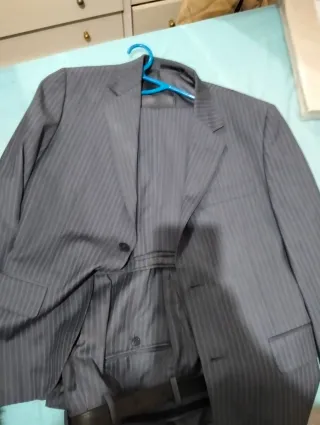 Elegante traje de hombre a rayas, ideal para ocasiones especiales. Se encuentra en muy buen estado. - Traje de dos piezas (chaqueta y pantalón). - Diseño clásico a rayas verticales. - Tejido de calidad.