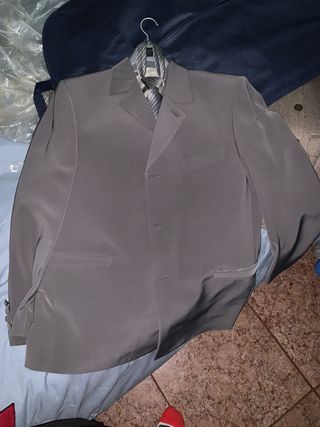 Traje de vestir de tres piezas en color gris. Incluye chaqueta y chaleco. Talla 56 Solo puesto una vez. Hecho en Comunidad europea - Chaqueta de vestir con solapa. - Chaleco a juego. Posibilidad de poder hacer la entrega en mano en algún punto de la Comunidad de Madrid.