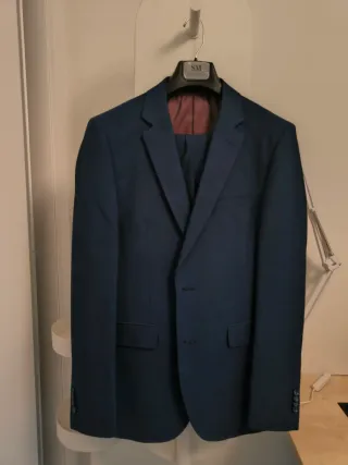 Traje de chaqueta y pantalón para hombre. - Chaqueta con solapa - Cierre de dos botones. - Bolsillos de solapa. bolsillos interiores - Pantalón a juego. usado una vez y llevado al tinte. listo para usar