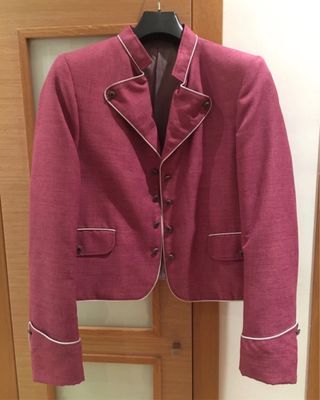 Traje regional valenciano para hombre de estilo Torrentí. Usado varios años pero en muy buen estado. - Diseño tradicional. - Acabado en color rosa. - Pantalón talla 42