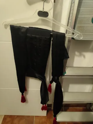 Pantalones negros para desfiles de Moros y Cristianos. - Diseño tradicional. - Detalle de borlas en los bajos. - Tejido de terciopelo. Talla 5-6-7-8 depende del tamaño del niño