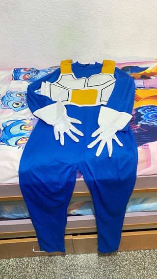 Disfraz completo de Vegeta. - Traje azul con detalles blancos y amarillos. - Guantes blancos. - Talla 2Xl Traje solo 15€,peluca 8€ Todo junto 20€