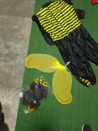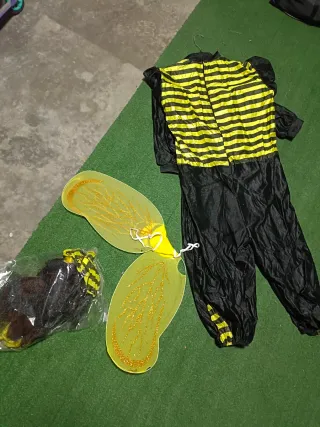 Disfraz de abeja para adulto, incluye mono y alas, peluca y antenas. - Mono con rayas amarillas y negras. - Alas de abeja amarillas con purpurina. - Talla S.