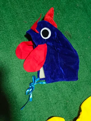 Divertido disfraz de pollo para adultos. Ideal para fiestas o eventos. - Diseño llamativo en azul y rojo. - Cierre con lazos para un ajuste cómodo.