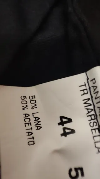 Conjunto de dos piezas para mujer. - Chaqueta de corte moderno. - Pantalón de pierna ancha. Se a estrenado solo una vez para una boda , la talla no parece de 44 es más pequeña.
