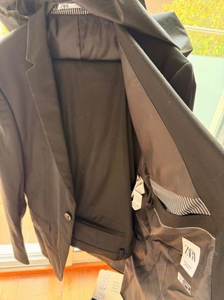 Traje de vestir elegante de Zara. Usado sólo en la graduación.talla chaqueta 46, talla pantalón 36. (Más o menos para un chico de 1.70 y unos 68 kg.) - Chaqueta con solapas clásicas. - Pantalón de corte recto. - Dos bolsillos en la parte delantera de la chaqueta.