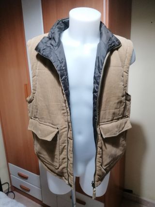 Precioso chaleco de pana que puede servir tanto para vestir como para cazar. Con ese precioso color desierto, marrón militar. Abriga mucho y está PERFECTO. Creo que solo se usó una vez. Se ve nuevo. Con 2 bolsillos interiores. Talla entre XL.