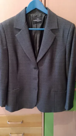 Conjunto de traje de chaqueta y falda como nuevo. - Chaqueta con cierre de botones. - Bolsillos frontales en la chaqueta. - Falda a juego.