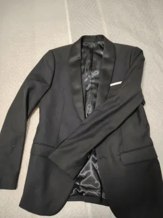 Elegante traje de chaqueta. - Solapa de satén. - Forro interior brillante. - Un bolsillo en el pecho. - Talla 38, como una S - Precio negociable