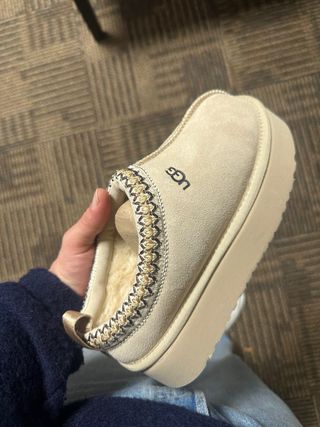 Zapatillas UGG TAZ 2 en color beige (precio negociable). Comprado en USA, sin ningún uso por talla errónea. No tengo caja ni ticket porque lo traje de Chicago como equipaje de mano. - Diseño tipo mule. - Adorno de trenza en el borde. - Forro interior de pelo sintético. - Suela gruesa.