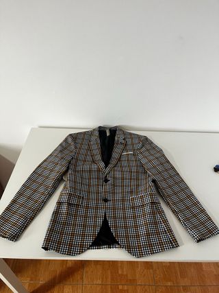 Americana cuadros marrón y blanco