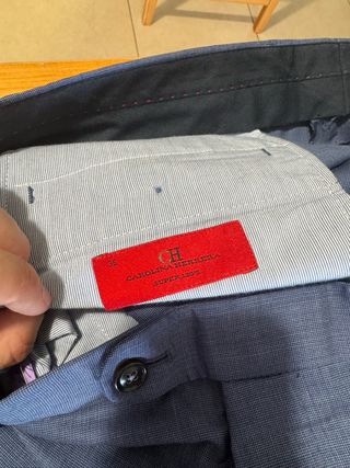 Traje elegante de Carolina Herrera en color azul claro. - Diseño clásico y sofisticado. - Incluye portatraje Carolina Herrera. - Se vende por cambio de talla. - En tienda cuesta 400€ - Se vende en mano (no se hacen envios).