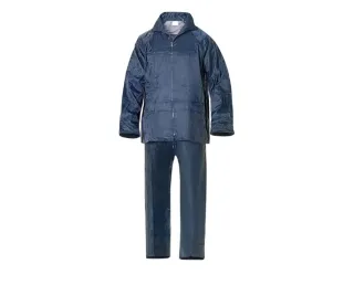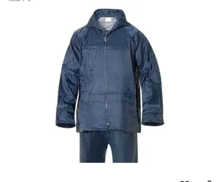 Conjunto de traje impermeable. - Chaqueta con cremallera. - Pantalón. - Material resistente al agua.