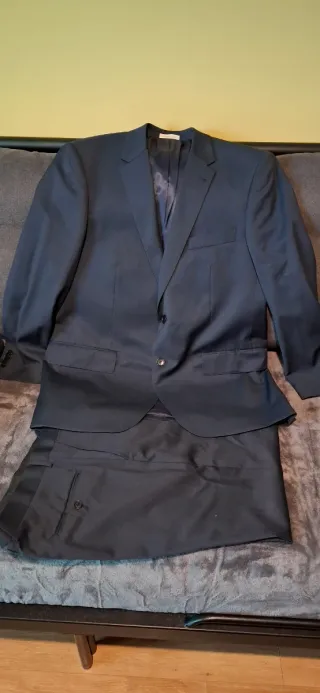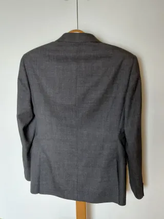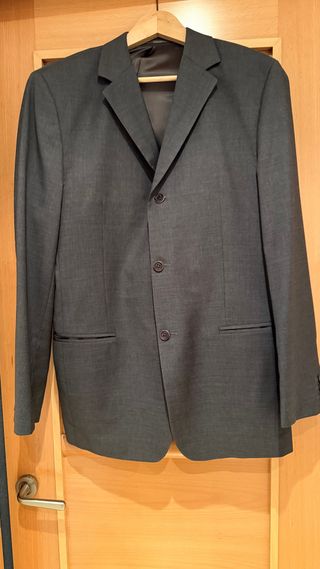 Se vende traje de chaqueta y pantalón marca EMIDIO TUCCI del Corte Inglés, totalmente nuevo, en perfectas condiciones y con tan solo una puesta. Pantalón 90cm. de cintura y 106cm. de largo. Chaqueta 53cm. de hombro, 77cm de largo y 55cm. de sisa. Material 100% lana virgen y forro 100% viscosa.