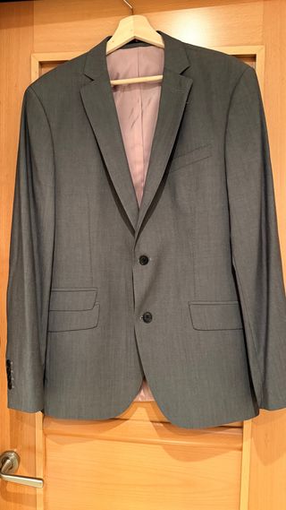 Elegante traje de chaqueta para hombre.lo vendo por no usarlo es muy bonito y Es de corte entallado me costó 500 € está limpio de tintorería ver imágenes - Chaqueta de corte clásico. - Pantalón a juego.