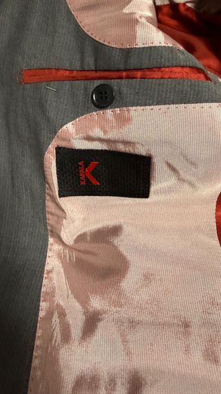 Muy bien conservado como se ve en las fotos la única pequeña mancha en el pantalón que casi no se nota como se ve en la foto. Talla de la chaqueta 46 y del pantalón 36.