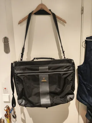 Maleta porta trajes Samsonite en color negro y gris. Ideal para transportar ropa y accesorios de forma organizada, con tres cremalleras, una en cada lado y otra central, para poder llevarlo como una maleta, impermeable - Compartimento principal espacioso. - Asas de mano reforzadas. - Cierre con cremallera. - Detalles en material sintético.