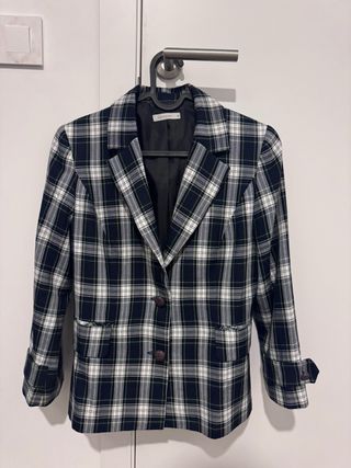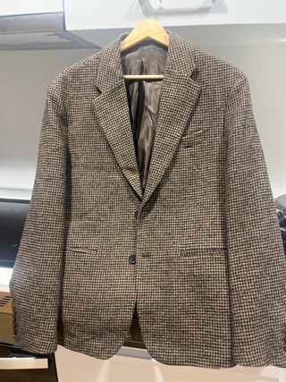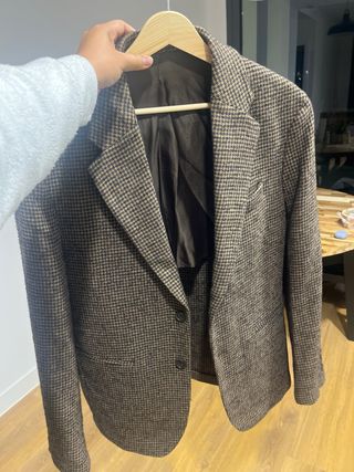 Traje de chaqueta y pantalón de la marca MANGO. - Chaqueta de corte slim - Pantalón a juego con el mismo estampado. - Diseño a cuadros. Se vende porque se uso 2 veces y ya no me va bien la talla