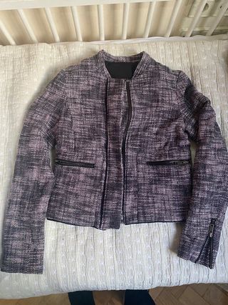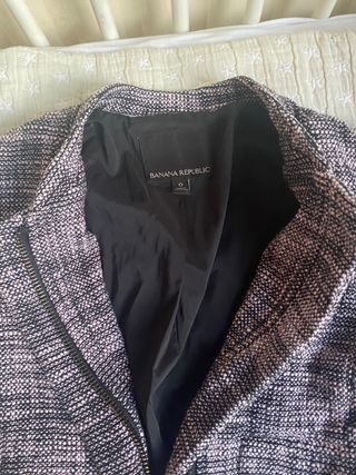 Blazer de diseño moderno con un tejido texturizado. - Cuello redondo. - Cierre de cremallera frontal. - Bolsillos con cremallera. - Cremalleras decorativas en los puños. - Elegante y moderno - Banana Republic