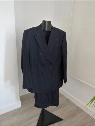 Elegante traje de chaqueta con raya diplomática.En perfecto estado.Como nuevo - Chaqueta de corte clásico. - Un botón. - Dos bolsillos frontales. - Forro interior.