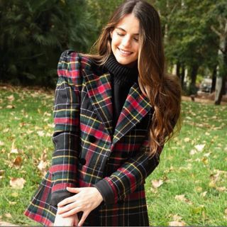 Conjunto de chaqueta y pantalón con estampado de cuadros. - Chaqueta con mangas abullonadas. - Cierre de botones en la parte delantera de la chaqueta. - Pantalón recto. Zara, Loewe, Carolina Herrera, Bimba y Lola, Tous, Gucci, Aristocrazy, calvin klein, Prada, miu miu, Massimo Dutti, Michael Kors, Manoush, Teté by Odette, Coosy, The IQ Collection, Cherubina,