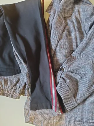Maravilloso traje compuesto por blazer con hombros abullonados y doble botonadura y pantalón a juego. Solapas y botones de terciopelo de negro. Es un traje abrigado, perfecto para otoño/invierno. 20% lana. Las 2 prendas en talla M. Blazer usada en 3-4 ocasiones, como nueva. Pantalón nuevo con etiqueta. PVP 300€. No vendo por separado Zara, Loewe, Carolina Herrera, Bimba y Lola, Tous, Gucci, Aristocrazy, calvin klein, Prada, miu miu, Massimo Dutti, Michael Kors, Manoush, Teté by Odette, Coosy, The IQ Collection, Cherubina,