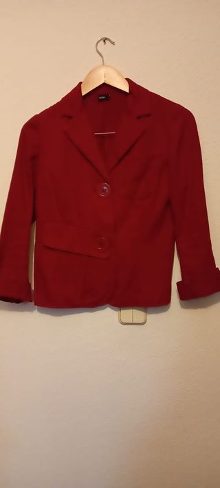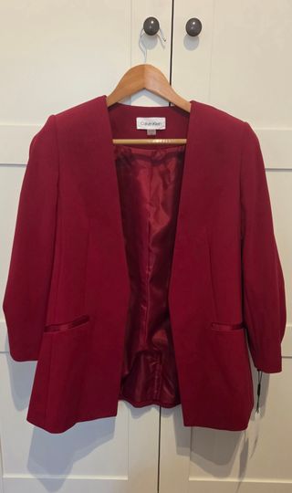Americana elegante de Calvin Klein en color rojo. Nueva a estrenar con etiqueta - Diseño moderno. - Mangas tres cuartos. - Forro interior satinado.