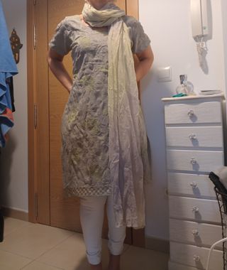 Traje Indú Gris y Verde Talla Única